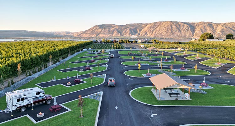 The latest addition is an upscale RV park that opens seasonally from May through October. Nestled between a working cherry orchard and vineyard, the park features 20 spacious pet-friendly RV sites offering shaded picnic tables, gas fire pits and full hookups.