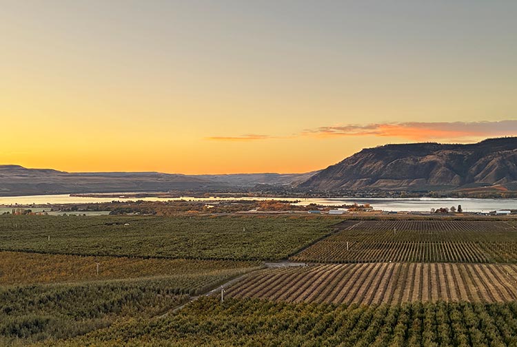 With that, Jim began formulating plans to plant winegrapes that would share farm space with the family’s ten varieties of apples (Honeycrisp, Envy, Cosmic Crisp, Golden Delicious, Granny Smith, Gala, Fuji, Pink Pearl, Opal and Green Dragon), three varieties of cherries (Santina, Coral Champagne and Chelan), blackberries, raspberries, marionberries, strawberries and blueberries.
