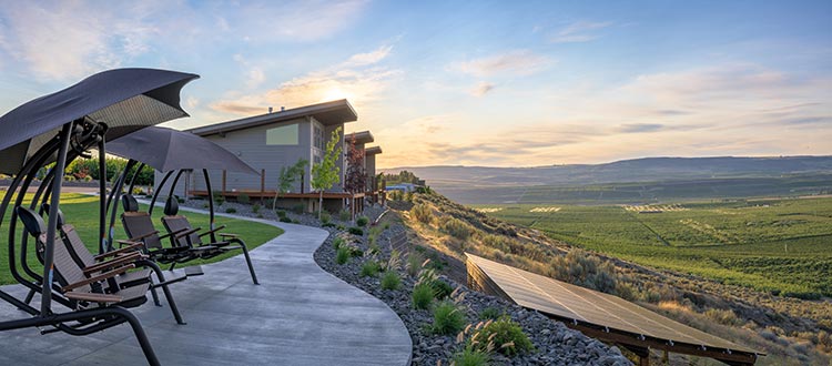 Vacation getaways are a popular option thanks to the winery’s modern six rental cottages, each boasting eye-catching territorial views of the Columbia River. (There’s even a “river house” that can accommodate groups up to a dozen.) The scenery is bucolic, with sweeping outdoor spaces for festive weddings and events.